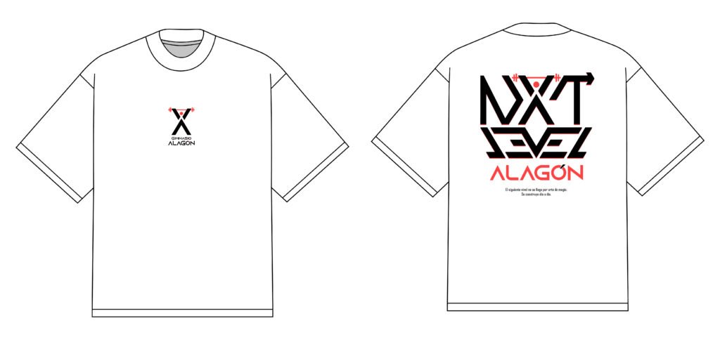 Por último, he diseñado lo que podría ser una camiseta de NEXT LEVEL, para comprobar que funciona bien en contextos más informales y puede formar parte del día a día de vuestros clientes.