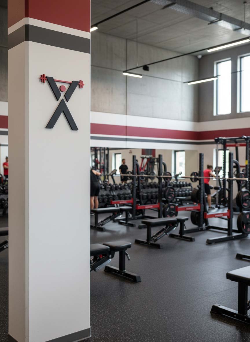 He apostado por una estética muy limpia y simétrica, donde todo está bien equilibrado. Esa sencillez transmite seriedad, disciplina y una sensación de trabajo bien hecho, que creo que encaja con el mensaje a transmitir en el gimnasio.